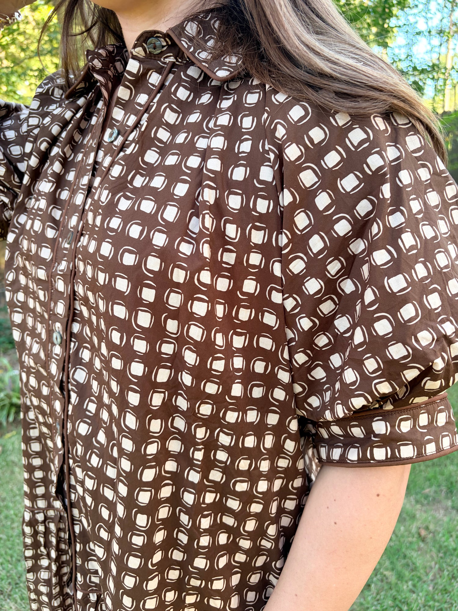 Such a great every day fall staple dress to have in your closet! Pair this with boots or flats and you’re ready to go! Features functional buttons all the way down the front, pockets and a cute little short puff sleeve. Very forgiving fit!!